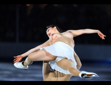 あるスケートショーにて、男女ペアで、ミニスカートで滑り白アンスコ・乳首が丸見え