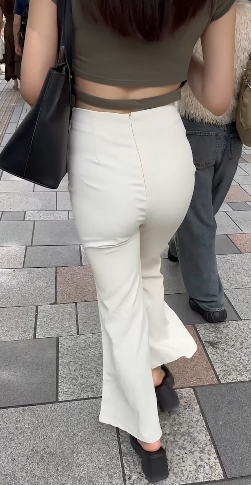 【街鳥】リブニットパンツから見えるムチ尻肉とパンティライン
