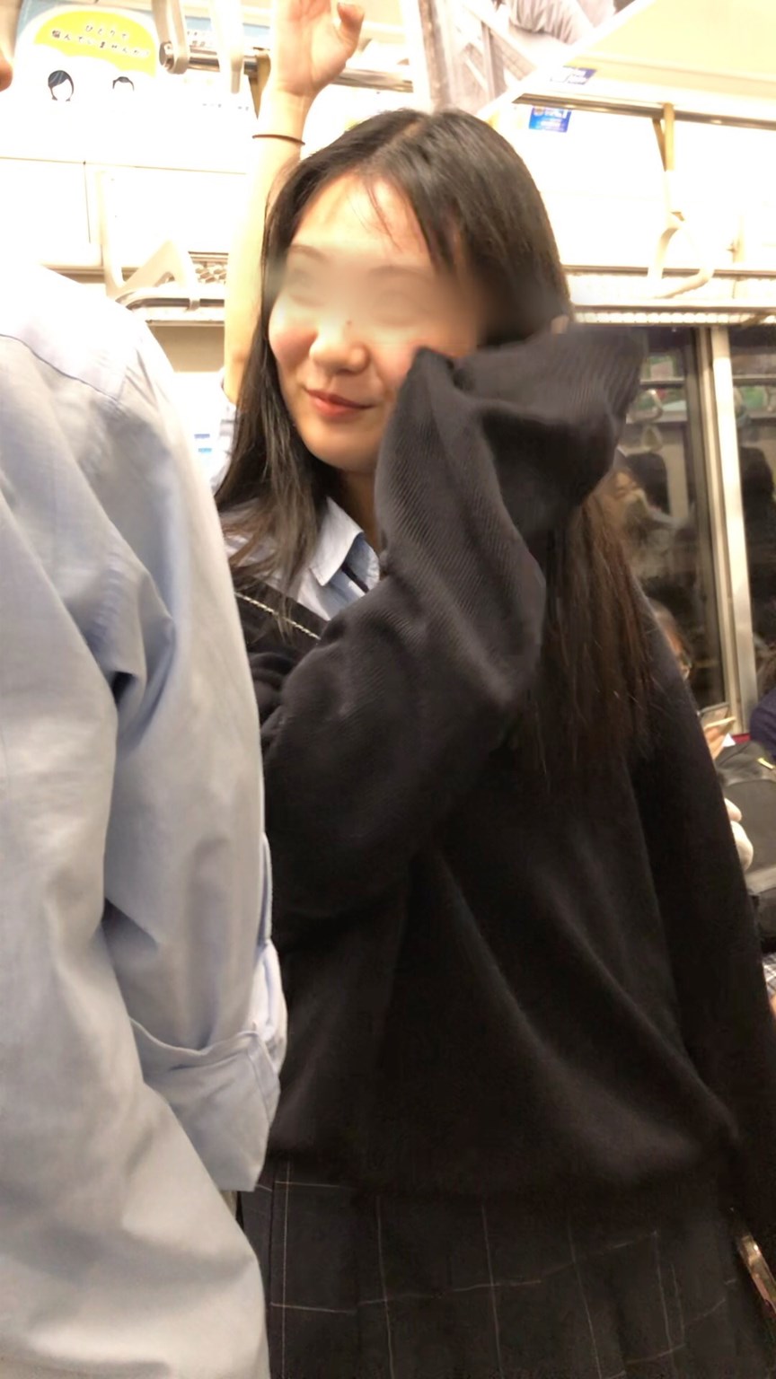 (電車対面)(顔出し)えちえち…スレンダーボディを包む布面積を最小化…二の腕…むちむちふともも…むき出しにしちゃう美人お姉さん