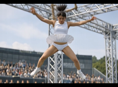 【AI動画】ミニスカートで行うプールの上での障害物競走(その1)